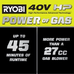 RYOBI Soffiatore serie Whisper senza spazzole da 40 V HP da 600 cfm all’aperto 06V0D309