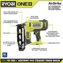 RYOBI Chiodatrice per finitura 18v one+ airstrike calibro 16 utensili elettrici 06V0D176