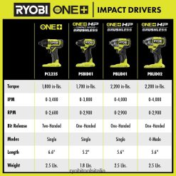 espandi il tuo sistema Ryobi 18v one+ con l’avvitatore ad impatto ryobi 18v 1/4″. L’avvitatore ad impatto 18v one+ 1/4″ è dotato di un potente motore che fornisce 1.800 pollici-libbre. di coppia. la pinza a connessione rapida da 1/4″ garantisce praticità durante la sostituzione delle punte. Le luci da lavoro a LED integrate creano visibilità extra per tutte le esigenze dei tuoi progetti. Questo avvitatore a impatto da 18 V 1/4″ è coperto dalla garanzia del produttore di 3 anni Ryobi e include (1) avvitatore a percussione pcl235 18 V one+ 1/4″ e manuale dell’operatore. batteria e caricabatterie venduti separatamente.