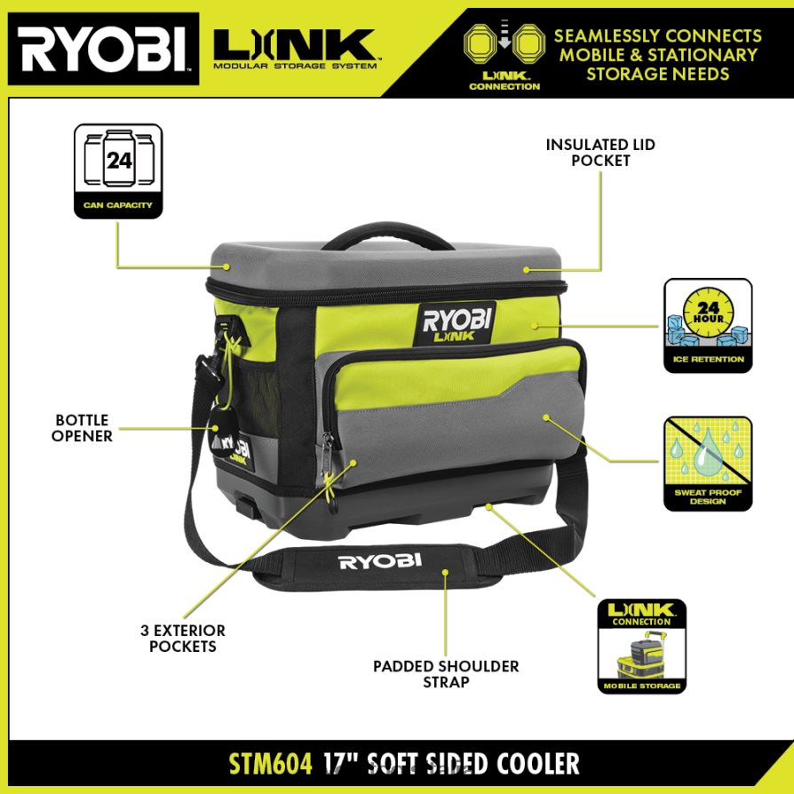 il sistema di storage modulare ryobi link sta rivoluzionando il settore dello storage, consentendoti di organizzare, accedere e trasportare la tua vita. il frigorifero portatile ryobi link da 17″ con lato morbido ha un design a prova di sudore, con ritenzione del ghiaccio 24 ore su 24 e una capacità di 24 lattine. con questo frigorifero sarai pronto per qualsiasi luogo di lavoro o avventura, dalla spiaggia al campeggio. la tasca sul coperchio isolata è lo spazio perfetto per tenere oggetti, come il cibo, separati e refrigerati. le 3 tasche esterne consentono di riporre facilmente oggetti aggiuntivi, come lo spazio per gli attrezzi. per non parlare dell’apribottiglie incluso è attaccato così non rimarrai mai a mani vuote. trasporta sfruttando il comfort maniglia superiore o utilizzare la tracolla imbottita inclusa. Questo frigorifero portatile può essere facilmente collegato alla cassetta degli attrezzi mobile per viaggiare con te ovunque. Soprattutto, fa parte dila linea di prodotti del sistema di archiviazione modulare ryobi link che utilizza la stessa tecnologia di chiusura per connettere perfettamente le tue esigenze di archiviazione mobile e fissa. possiedi il tuo spazio con il sistema di archiviazione modulare ryobi link.
