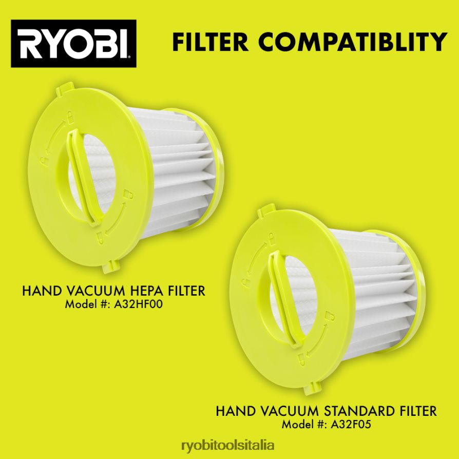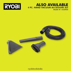 ryobi introduce il kit aspirapolvere one+ hand 18v nella nostra categoria di pulizia. questo aspirapolvere manuale migliorato ha un motore potente che offre un’aspirazione eccezionale per raccogliere una varietà di detriti secchi. La praticità e la leggerezza del cordless offrono agli utenti la portabilità per pulire ovunque. un contenitore per la polvere facile da svuotare e un sistema a doppio filtro consentono agli utenti di pulire e mantenere rapidamente l’aspirapolvere manuale per prestazioni ottimali. questo aspirapolvere portatile è compatibile con una varietà di accessori da 1-1/4″ come una spazzola per la polvere, una bocchetta per fessure, una bocchetta multiuso e un tubo flessibile (kit di accessori a32k05 venduto separatamente). filtri standard compatibili per aspirapolvere manuale (a32f05) e aspirapolvere manuale hepa anche i filtri (a32hf00) sono venduti separatamente. coperto dalla garanzia del produttore ryobi di 3 anni, questo kit include unn aspirapolvere portatile da 18 V, batteria al litio da 18 V 2 Ah, caricabatterie, filtro e manuali utente