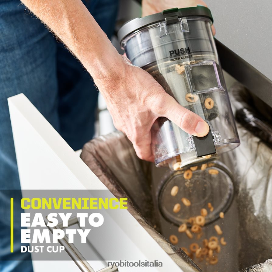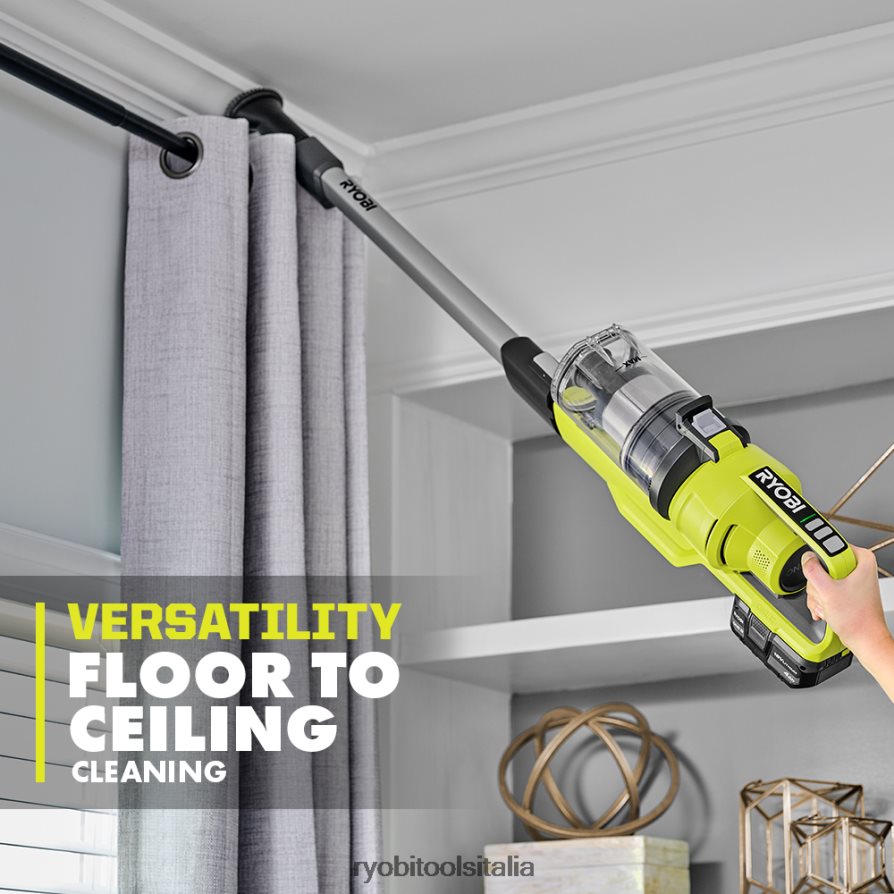 ryobi introduce il kit stick cordless da 18 V one+ nella nostra categoria di pulizia, offrendo la comodità del cordless per la pulizia dal pavimento al soffitto. questo stick aspirapolvere migliorato non solo fornisce il 20% in più di potenza di aspirazione, ma è anche il 30% più leggero e il 50% più silenzioso. la batteria agli ioni di litio da 4 Ah inclusa fornisce 45 minuti di autonomia per carica. il filtro ciclonico intrappola fino al 99,9% di polvere e allergeni. le luci a led sulla barra a rulli illuminano polvere, sporco e capelli. il contenitore della polvere facile da svuotare e la barra a rulli rimovibile consentono di pulire e mantenere rapidamente l’aspirapolvere. rimuovendo la bacchetta di estensione, ora hai un aspirapolvere manuale per pulire i disordini nella tua auto, sulle scale, su superfici delicate e in spazi ristretti con lo strumento per fessure e la spazzola per la polvere inclusi. questo bastone vacsta in piedi da solo e include un supporto a parete per riporre comodamente l’unità dopo l’uso. coperto dalla garanzia del produttore ryobi di 3 anni, il kit aspirapolvere senza fili 18 V one+ include una bocchetta per fessure, una spazzola per la polvere, un supporto a parete, una batteria agli ioni di litio da 18 V 4 Ah, un caricabatterie e manuali dell’operatore.