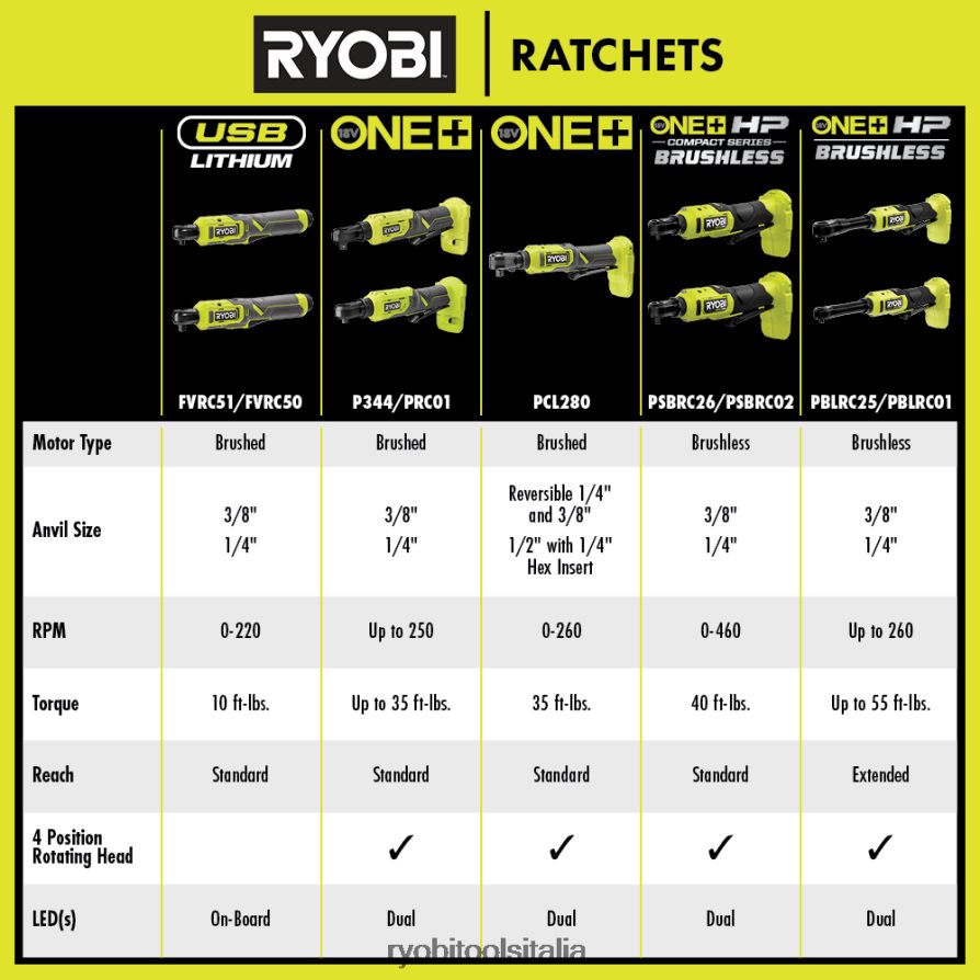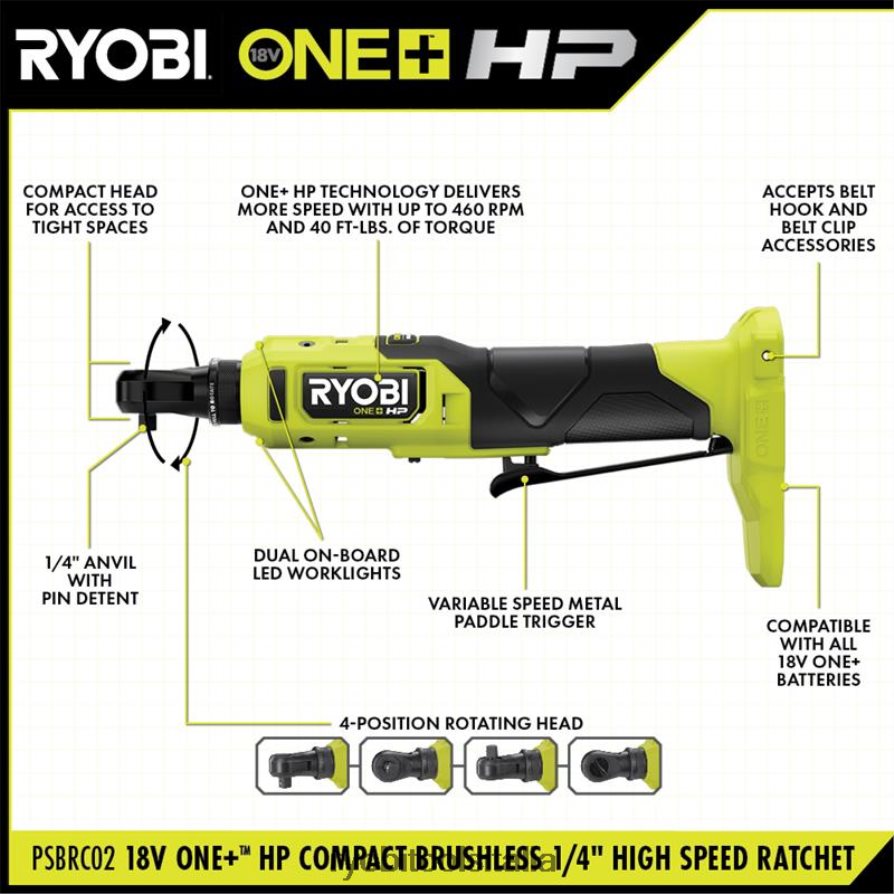 RYOBI Kit cricchetto 18v one+ hp compatto brushless 1/4 ad alta velocità utensili elettrici 06V0D55