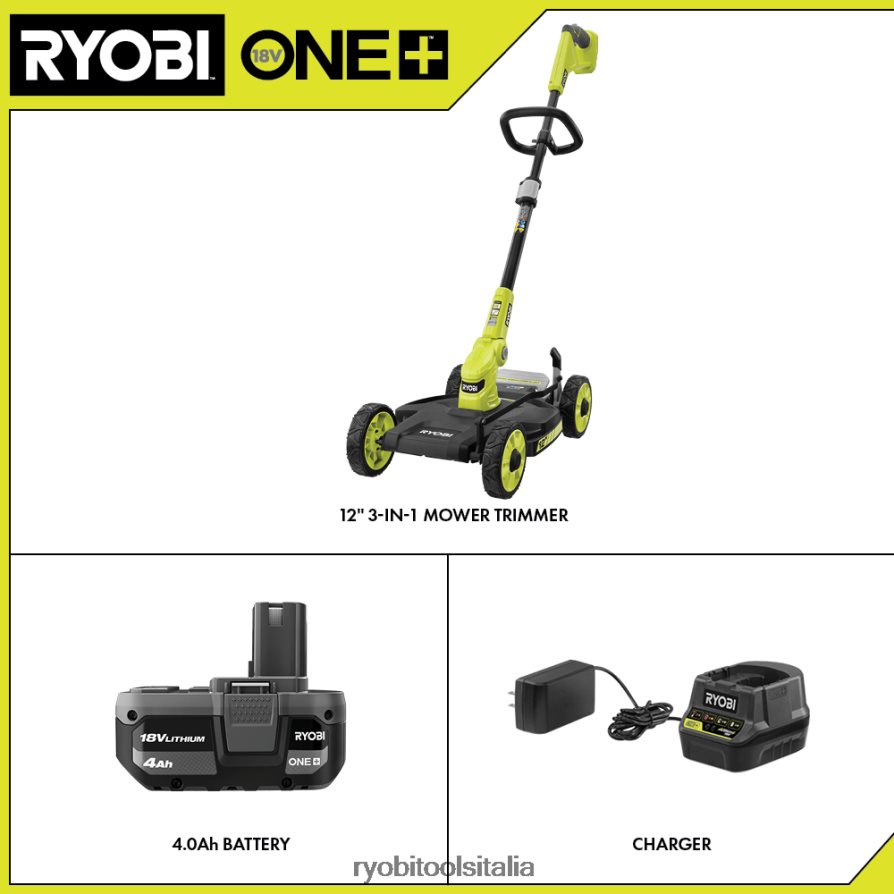 il tosaerba, decespugliatore e tagliaerba ryobi 18v one+ 3 in 1 è un’opzione perfetta per chiunque abbia un giardino più piccolo ! ricco di potenza per portare a termine il lavoro, questo strumento ti consente di risparmiare spazio nel tuo garage e svolgere molto lavoro con lo stesso strumento. il piatto tosaerba da 12″ facilmente collegabile trasforma il tuo decespugliatore in un tosaerba per darti un taglio pulito e uniforme sul tuo prato. Ha una regolazione dell’altezza a punto singolo in 4 posizioni da 1,5″ a 3,5″. stacca rapidamente il piatto tosaerba e esegui qualsiasi rifinitura intorno ad aiuole, recinzioni o aree difficili da raggiungere e con una larghezza di taglio regolabile da 10″ a 12″ puoi ottimizzare la potenza e l’autonomia. infine utilizza il pulsante per ruotare l’albero per bordare facilmente lungo i marciapiedi e guidare modi per ottenere il prato fresco e ben curato che sicuramente faràe i vicini gelosi. questo strumento ha un grilletto a velocità variabile per un maggiore controllo e un albero telescopico regola l’altezza per comodità. è compatibile con il filo da taglio da .080″ e .065″. questo strumento utilizza la nostra testina di alimentazione automatica che fa avanzare il filo ogni volta che rilasci il grilletto. questo kit include una batteria da 18 V 4,0 Ah e un caricabatterie. la batteria è compatibile con il sistema ryobi one+. coperto da una garanzia di 3 anni.