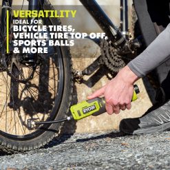 ryobi presenta il kit di gonfiaggio ad alta pressione USB al litio. questo gonfiatore USB al litio ad alta pressione è la soluzione ideale per pneumatici di biciclette, rabbocco di pneumatici di veicoli e palloni sportivi per continuare la giornata. utilizzare il manometro digitale per una facile lettura della misurazione e un riempimento preciso. la luce da lavoro a LED integrata illumina l’applicazione indipendentemente dall’ambiente. con spazio di archiviazione a bordo, porta con te gli accessori inclusi e un tubo da 6″ per il gonfiaggio in movimento. Questo prodotto è dotato di un indicatore LED per segnalare quando la batteria è carica (verde) o è scarica (rosso) durante l’uso. USB Il kit di gonfiaggio ad alta pressione al litio fa parte del sistema al litio USB che fornisce soluzioni compatte, portatili e ricaricabili per l’alimentazione e la produttività senza fili. Questo gonfiatore ad alta pressione al litio USB è supportato.coperto dalla garanzia del produttore di 2 anni Ryobi e include (1) dispositivo di gonfiaggio USB al litio ad alta pressione fvif51, (1) batteria USB al litio 2Ah fvb01, cavo USB, ago sportivo, adattatore per valvola Presta e manuali dell’operatore.