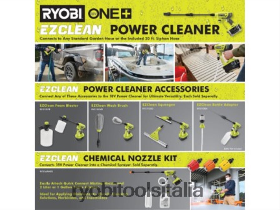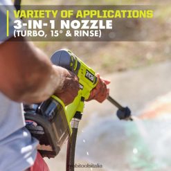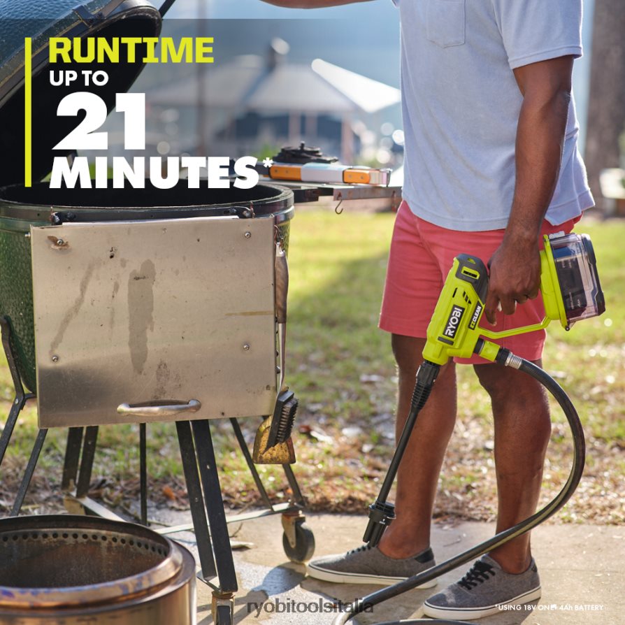 espandi il tuo sistema ryobi 18v one+ con il kit di pulizia 18v one+ ez clean power. il potente motore fornisce fino a 320 psi per una rapida pulizia portatile, rendendolo ideale per la pulizia di finestre, mobili da esterno, barche, camper e altri veicoli ricreativi. sperimenta le massime prestazioni semplicemente premendo un grilletto, senza il fastidio di gas o cavi. puoi collegare facilmente l’idropulitrice al tubo a sifone da 20 piedi incluso per aspirare l’acqua da qualsiasi specchio d’acqua dolce, una bottiglia da 2 litri utilizzando l’adattatore per bottiglia per la pulizia portatile o qualsiasi tubo da giardino standard quando un rubinetto dell’acqua si trova nelle vicinanze. goditi fino a 21 minuti di autonomia con la batteria al litio 18v one+ 4ah inclusa. completa una serie di applicazioni di pulizia rapide e dettagliate utilizzando l’ugello 3 in 1 (turbo, 15 gradi e risciacquare). migliora il tuo pulitore potente con la pistola a schiuma ry3112fb per l’erogazione controllata di detersivo in schiuma, la bacchetta flessibile ry3112fw per pulire aree di difficile accesso e la spazzola rotante ry3112sb per pulire cerchioni di auto, mobili da giardino e altre aree difficili da raggiungere (vendute separatamente) . meglio di tutto, fa parte del sistema ryobi one+: qualsiasi batteria 18v one+ funziona con qualsiasi prodotto 18v one+. l’aspirapolvere e la batteria sono coperti da una garanzia del produttore di 3 anni. questo kit include pulitore ry120350, ugello 3 in 1, bacchetta, tubo sifone da 20′, adattatore per bottiglia da 2 litri, batteria agli ioni di litio pbp005 18 V 4 Ah, caricabatterie p118 18 V e manuali dell’operatore.