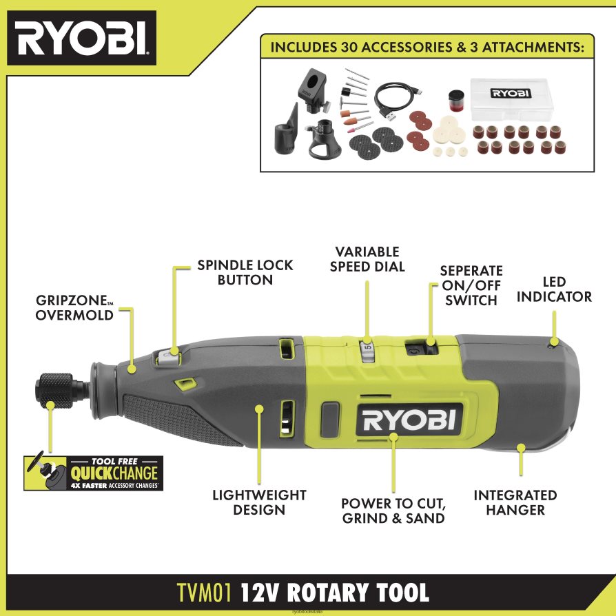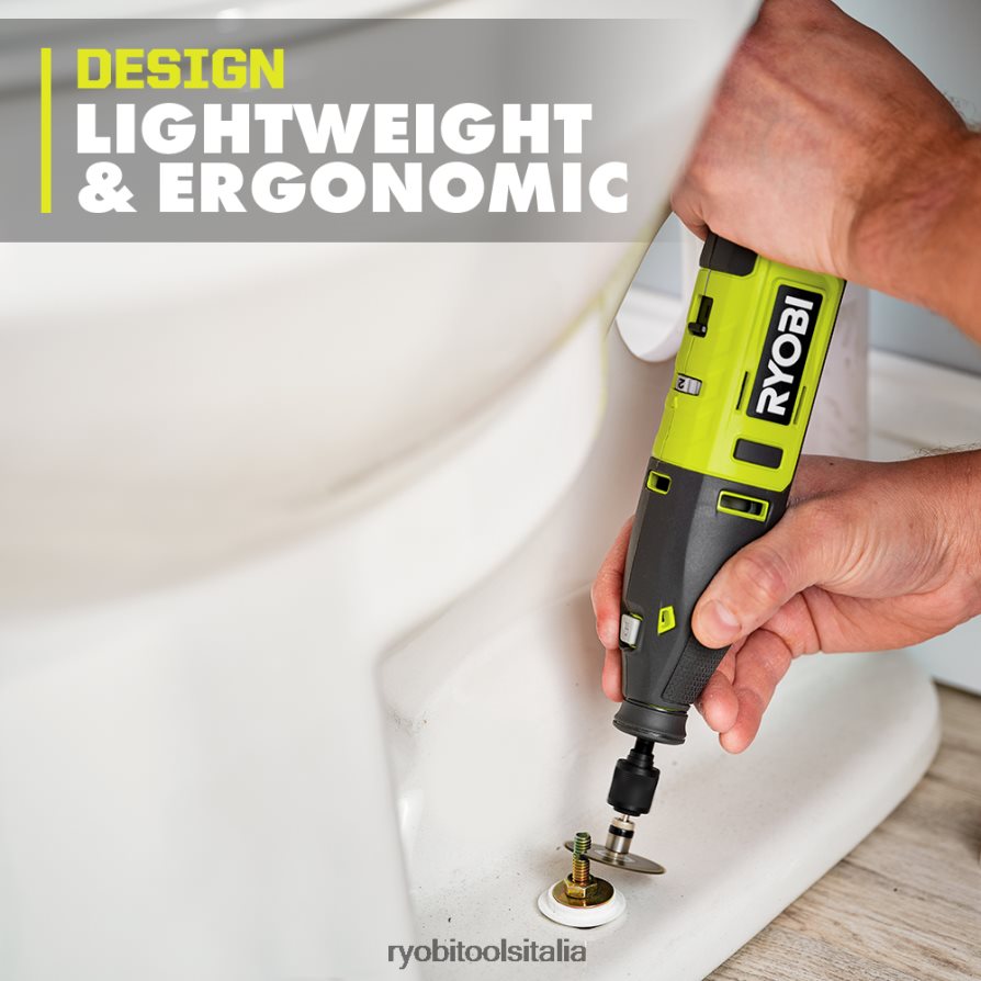 ryobi presenta il kit di utensili rotanti a batteria da 12 V. questo utensile rotante da 12 V ha una gamma di 5.000 – 35.000 giri/min nominali che offre agli utenti la potenza di tagliare, macinare e levigare con facilità la maggior parte dei materiali. il quadrante della velocità variabile ti consente di trovare la velocità perfetta per ogni applicazione e il design leggero semplifica lo svolgimento dei lavori in spazi di lavoro ristretti. questo strumento è inoltre dotato della nuova innovativa pinza a cambio rapido con cambio degli accessori 4 volte più veloce, che rende il cambio degli accessori facile e veloce. coperto dalla garanzia del produttore Ryobi di 3 anni, il kit di utensili rotanti a batteria da 12 V include 35 accessori, 3 accessori, chiave inglese, custodia per accessori, cavo USB e manuale dell’operatore.