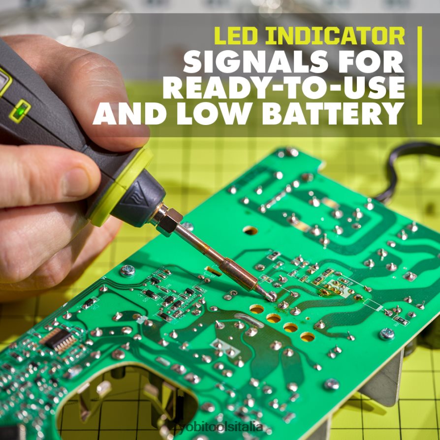 ryobi presenta il kit penna saldante USB al litio, che offre precisione di punta con la massima portabilità senza fili. questa penna per saldatura si riscalda fino a 900 gradi in meno di 2 minuti ed è ideale per l’unione di circuiti stampati, la creazione di gioielli, la riparazione di apparecchiature audio e altro ancora. il coperchio della punta spegne automaticamente la penna saldante per riporla comodamente. inoltre, questa penna saldante è dotata di spegnimento automatico dopo 10 minuti, per la massima tranquillità. la luce di lavoro integrata illumina il tuo spazio di lavoro, fornendo maggiore visibilità e precisione. questo prodotto è dotato di un indicatore led per segnalare quando lo strumento si sta riscaldando, oltre ad indicare lo stato di carica della batteria. meglio di tutto, fa parte del sistema di strumenti Ryobi USB Lithium che fornisce una soluzione compatta, portatile e ricaricabileioni per potenza e produttività senza fili. il kit penna saldante USB al litio è coperto dalla garanzia del produttore ryobi di 2 anni e include una batteria USB al litio 2Ah, cavo USB, punta a punta fine, coperchio della punta, saldatura da .031″ e manuali dell’operatore.