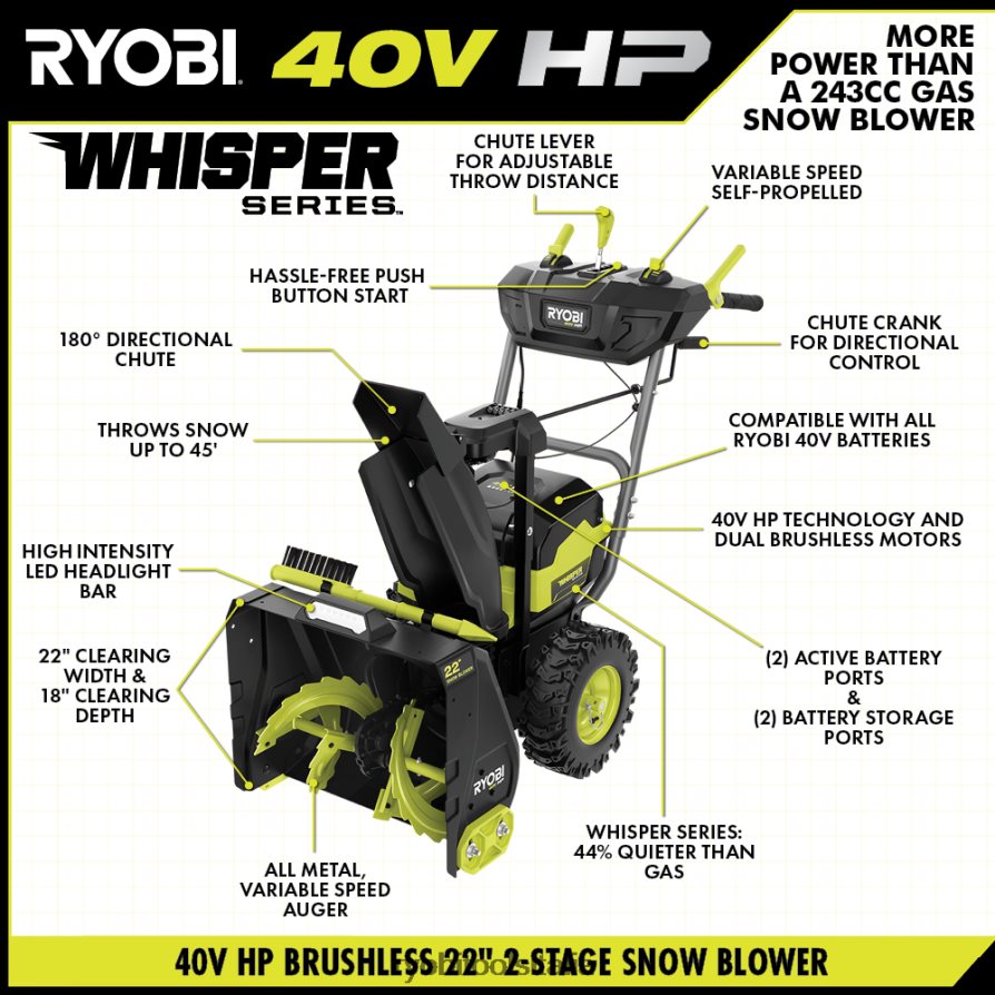 RYOBI Kit spazzaneve a due stadi 40v hp brushless Whisper serie 22 all’aperto 06V0D426