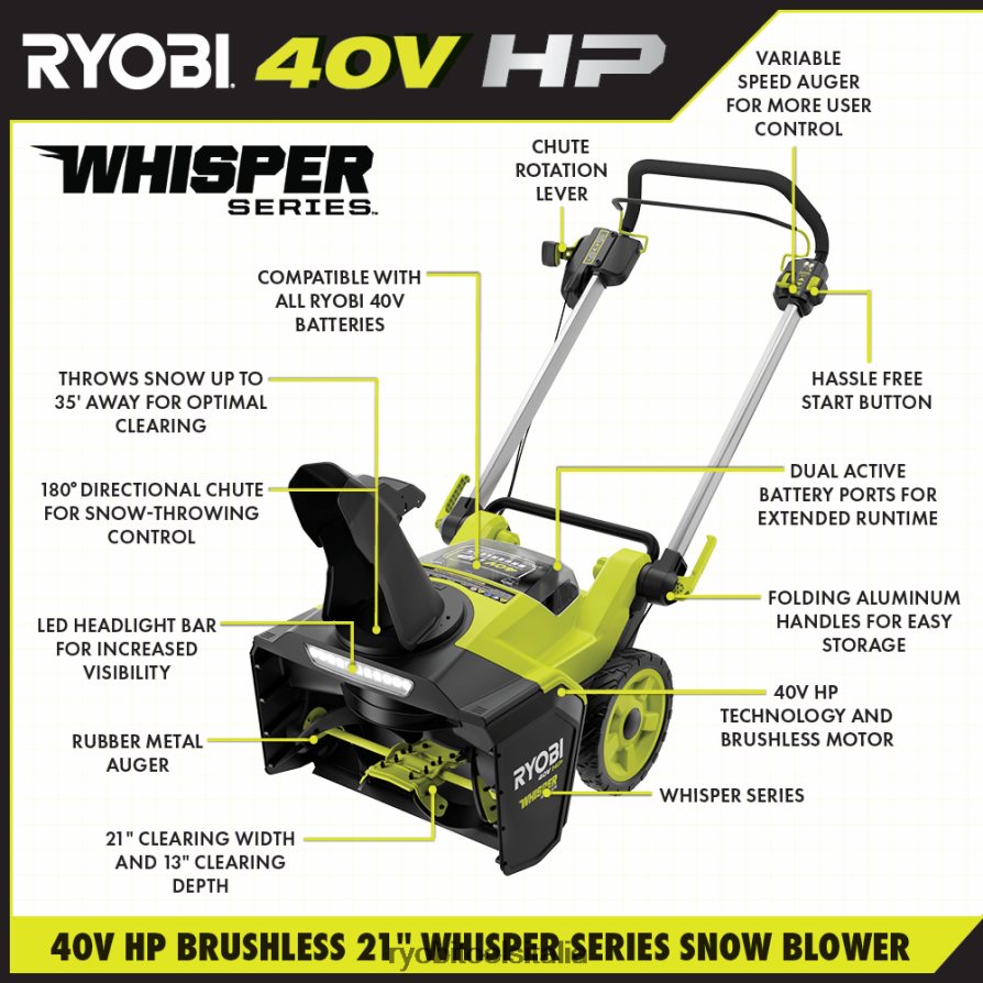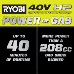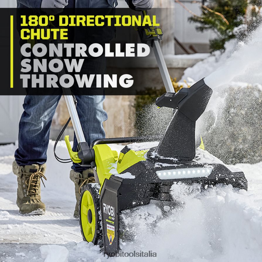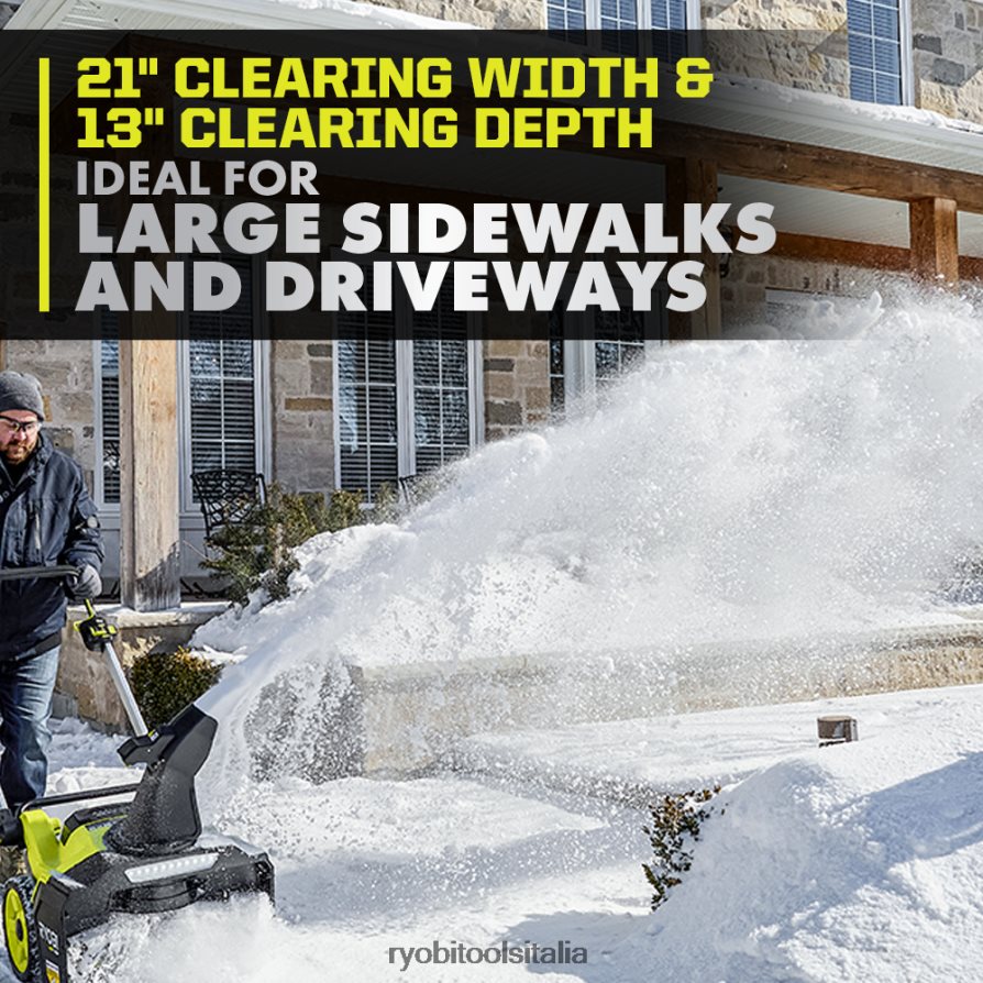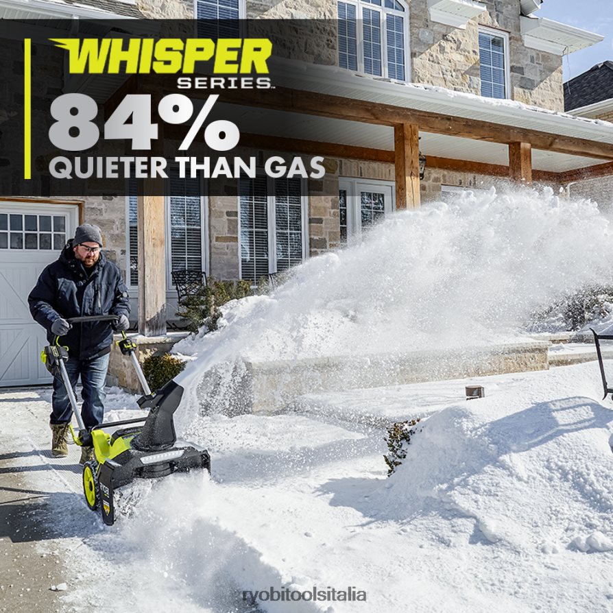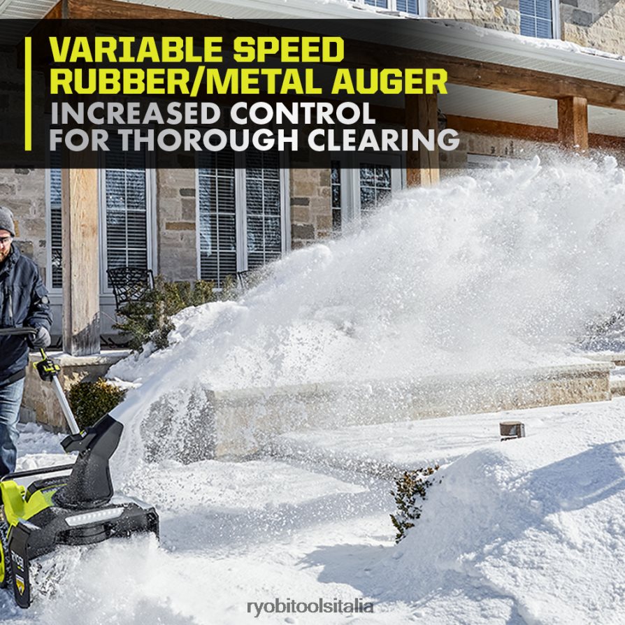 entra nel sistema ryobi 40v con il kit spazzaneve ryobi 40v hp brushless da 21″. La tecnologia 40v hp offre più potenza di un Spazzaneve a gas da 208 cc, che lo rende un vero sostituto del gas per lanciare neve fino a 35 piedi. La tecnologia da 40 V HP combina motori brushless, elettronica avanzata e tecnologia al litio ad alte prestazioni per fornire la potenza del gas senza manutenzione e problemi. Può pulire fino a 19 posti auto con le (2) batterie da 40 V 7,5 Ah incluse, che forniscono fino a 40 minuti di autonomia. Facendo parte della serie Whisper, la nostra gamma di prodotti più silenziosi, questo spazzaneve è più silenzioso dell’84% rispetto al gas, rendendolo perfetto per l’uso in qualsiasi momento della giornata senza disturbare gli altri. Con una larghezza di sgombero di 21” e una profondità di sgombero di 13”, questo spazzaneve è ideale per grandi smarciapiedi e vialetti. è inoltre dotato di una coclea in gomma/metallo a velocità variabile per uno sgombero accurato e uno lancio controllato della neve con uno scivolo direzionale a 180 gradi. ricarica ciascuna delle batterie da 40 V 7,5 Ah incluse in meno di 75 minuti con il caricabatterie rapido da 40 V incluso. soprattutto, fa parte del sistema ryobi 40v in cui qualsiasi batteria da 40v funziona con qualsiasi prodotto da 40v. questo kit spazzaneve brushless da 40 V HP da 21” è coperto dalla garanzia ryobi di 5 anni sullo strumento del produttore, 3 anni di garanzia sulla batteria del produttore e include spazzaneve ry408010 40 V HP brushless da 21”, (2) batterie al litio op40752 da 40 V 7,5 Ah, op406 caricabatterie rapido da 40 V, scivolo e gruppo direzionale e manuali dell’operatore.