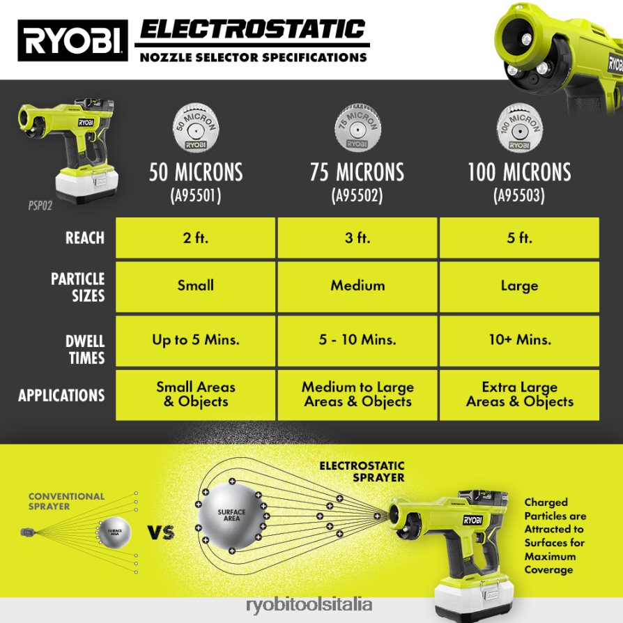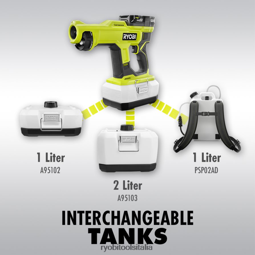 - applica disinfettanti, detergenti e deodoranti con la potenza della tecnologia elettrostatica