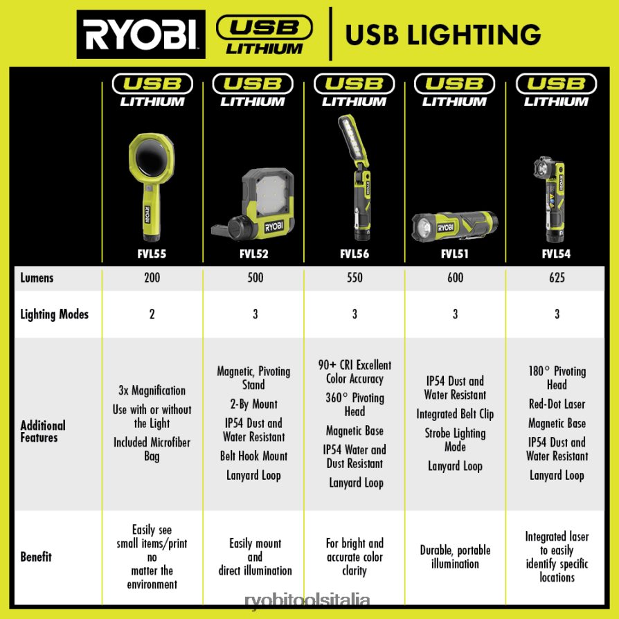 RYOBI Kit torcia led compatta al litio USB illuminazione, stile di vita e attività ricreative 06V0D504