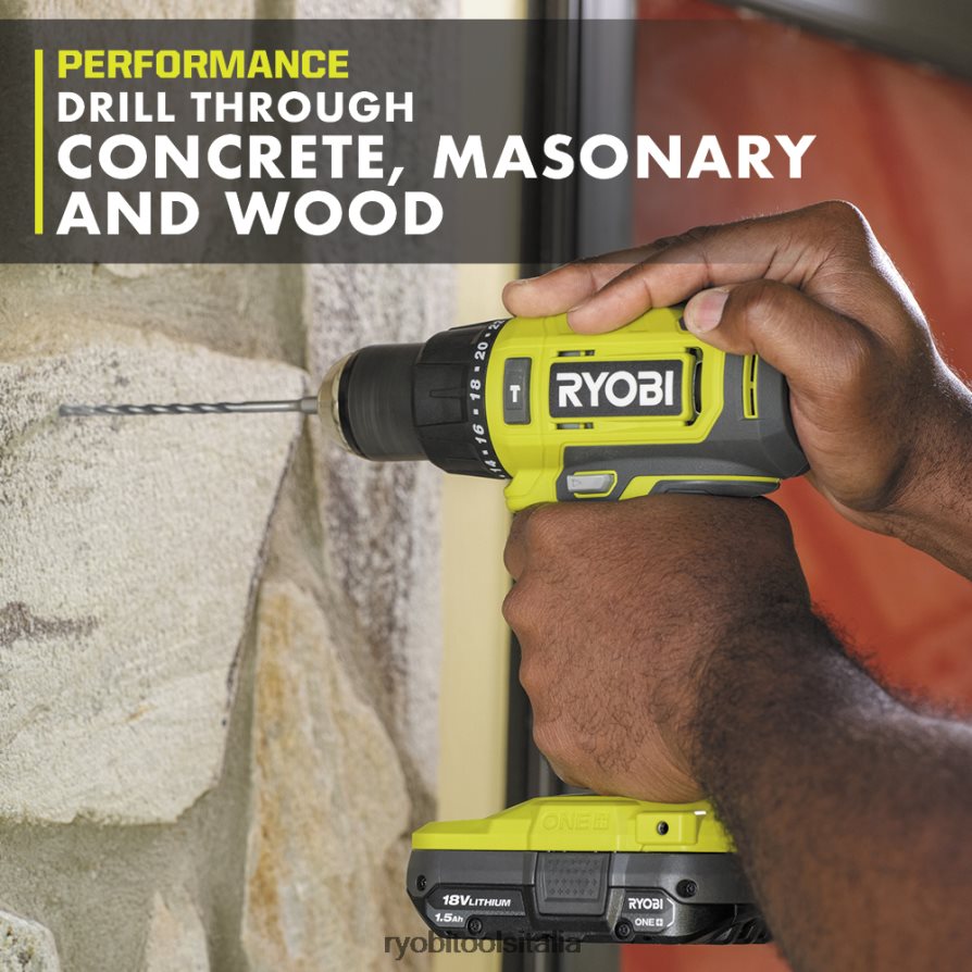 ryobi presenta il kit trapano a percussione cordless da 1/2 pollice 18 V one+ con (1) batteria da 1,5 Ah e caricabatterie. questo trapano a percussione ha un motore potente che fornisce fino a 515 pollici/libbre. di coppia e fornisce una perforazione rapida del martello nel calcestruzzo e nella muratura fino a 28.000 bpm. dotato di un mandrino in metallo a cricchetto senza chiave, la durata e la maggiore resistenza sono garantite. il cambio a 2 velocità e la frizione a 24 posizioni con modalità martello consentono di regolare la coppia erogata per controllare la profondità della vite o del dispositivo di fissaggio. la luce da lavoro a led integrata crea ulteriore visibilità per tutti i tuoi progetti. la batteria e il caricabatterie inclusi sono compatibili con tutti gli strumenti Ryobi 18v. questo kit trapano a percussione a batteria da 18 V one+ da 1/2 pollice è coperto dalla garanzia del produttore di 3 anni Ryobi e include (1) batteria da 1,5 Ah, caricabatterie da 18 V e operamanuali di tor.