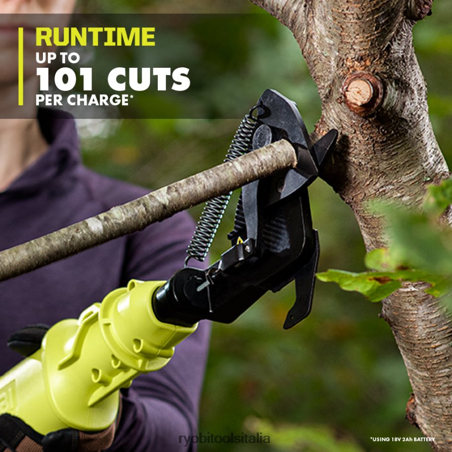espandi il tuo sistema ryobi 18v one+ con il kit troncarami 18v one+. il potente motore offre la possibilità di affrontare la potatura e la sramatura leggera di rami fino a 1-1/4” di spessore. questo troncarami effettua fino a 101 tagli per carica con la batteria da 18 V uno + 2 Ah inclusa. sperimenta prestazioni eccezionali semplicemente premendo un grilletto, senza il fastidio di cavi o strumenti di taglio manuali. l’azione di taglio bypass esegue tagli puliti e completi per mantenere le piante sane e in crescita. a 2,5′, questo troncarami consente di raggiungere arti alti ed è dotato di un gancio per rami per una facile rimozione dei rami. meglio di tutto, fa parte del sistema ryobi one+ in cui qualsiasi batteria 18v one+ funziona con qualsiasi prodotto 18v one+. questo kit troncarami da 18 V one+ è coperto dalla garanzia del produttore di 3 anni Ryobi e include un 18 V 2 Ahbatteria, caricabatterie da 18 V, gancio per ramo, guaina per lama e manuali dell’operatore.