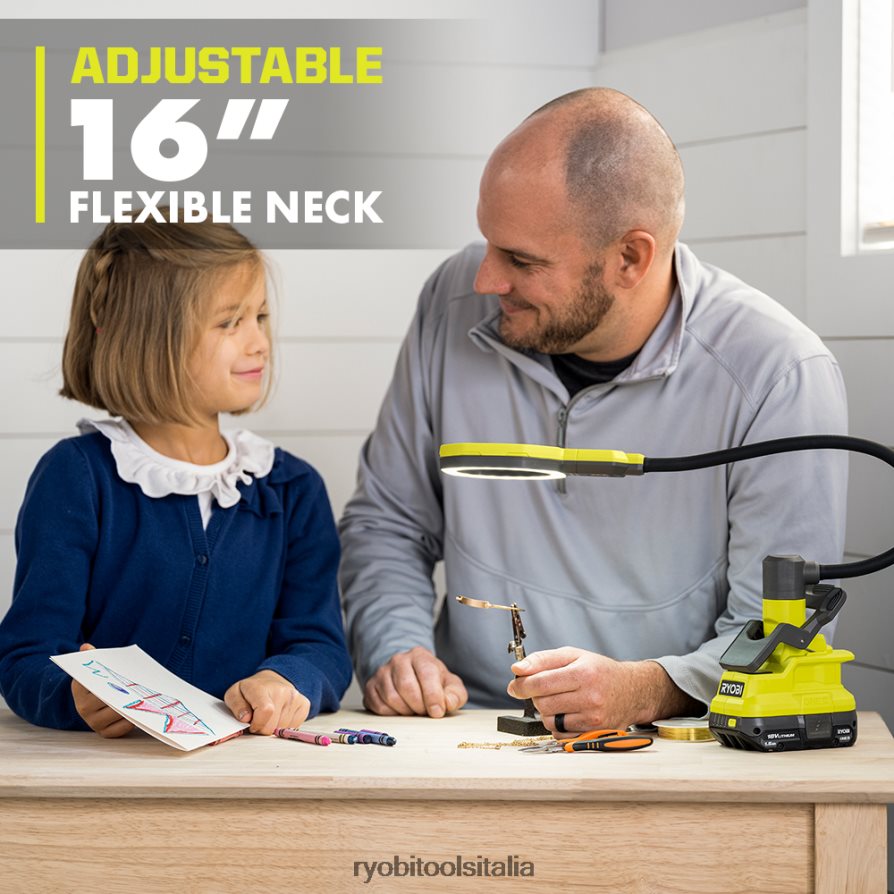 espandi il tuo sistema ryobi 18v one+ con la luce a morsetto a led con ingrandimento ryobi 18v one+. con 500 lumen di emissione luminosa a LED e obiettivo di ingrandimento da 3,5″, gli utenti hanno la possibilità di migliorare la vista su qualsiasi progetto. La luce con morsetto a LED con ingrandimento ryobi 18v one+ è ideale per tecnici, ispettori, collezionisti, hobbisti, artigiani, lettori e altro ancora Installa questo prodotto in quasi tutti gli spazi di lavoro utilizzando la comoda base di bloccaggio per afferrare saldamente sia superfici arrotondate che piatte fino a 1-3/4″. la lente acrilica di alta qualità fornisce un ingrandimento di 2,25x senza distorsioni con un ingrandimento spot di 5x per ispezioni più ravvicinate. un collo flessibile da 16″ e una base rotante consentono un posizionamento preciso personalizzato in base alle esigenze dello spazio di lavoro di ciascun utente. due impostazioni di luminosità consentono agli utenti di selezionare 250 o 500 lumen per abbinare ililluminazione al compito da svolgere. i LED di alta qualità sono distribuiti uniformemente attorno alla lente di ingrandimento per un’illuminazione completa dell’area di lavoro. questa luce consente la produttività per tutto il giorno con oltre 20 ore di autonomia. la luce con morsetto a led con ingrandimento ryobi 18v one+ può essere utilizzata come lente di ingrandimento illuminata o come luce a led autonoma. questa luce con morsetto a LED con ingrandimento da 18 V è coperta dalla garanzia del produttore ryobi di 3 anni. batteria e caricabatterie venduti separatamente.