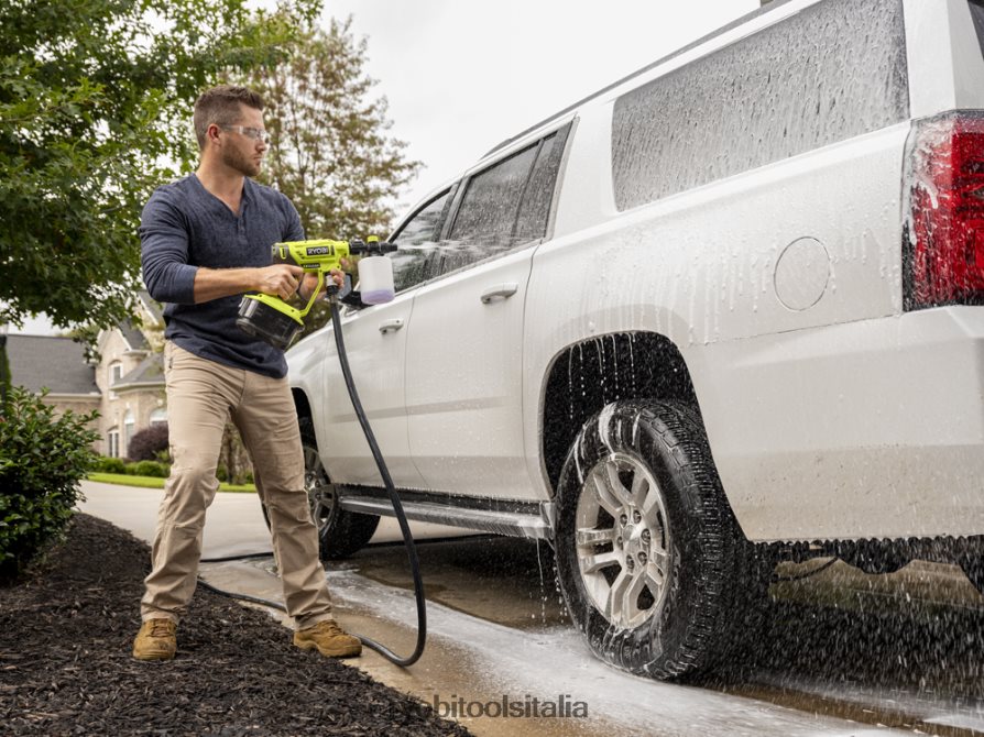 la pistola a schiuma ryobi ezclean aiuta a rimuovere sporco, olio, grasso, pellicola stradale e macchie da una varietà di superfici. il getto di schiuma si collega direttamente all’idropulitrice ryobi 18v one+ tramite la bacchetta in modo da poter cambiare facilmente gli accessori. questa pistola a schiuma può essere utilizzata per pulire vinile, legno, mattoni, stucco, cemento, cemento, fibra di vetro, piastrelle, metallo, plastica, veicoli e altro ancora. questo accessorio è dotato di un quadrante di controllo della schiuma, in modo da poter controllare facilmente la quantità di schiuma spessa e aderente applicata. il blaster in schiuma ryobi ezclean può essere utilizzato solo con il pulitore potente ryobi 18v one+. il blaster in schiuma ezclean è compatibile con la maggior parte dei detersivi, ma per ottenere prestazioni ottimali utilizzare ry31d55. il sistema ezclean include una varietà di accessori che si collegano all’idropulitrice ryobi 18v one+ per aiutarti a pulire facilmente i lavori più sporchi!