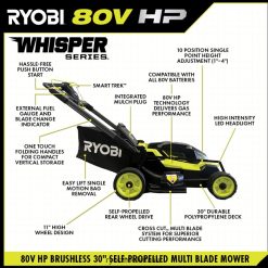 il tosaerba a taglio trasversale serie Whisper da 30″ senza spazzole Ryobi 80 V HP utilizza la tecnologia 80 V HP per offrire un’esperienza di taglio più efficiente rispetto al gas con la facilità della batteria Ryobi da 80 V. La tecnologia offre il 35% di potenza in più per le prestazioni a gas, rendendo questo nuovo tosaerba da 30″ più potente di un tosaerba a gas da 223 cc. come parte della serie Whisper, la gamma di prodotti più silenziosi di Ryobi, questo tosaerba è il 70% più silenzioso di un tosaerba a gas. con un semplice avvio tramite pulsante, gli utenti possono affrontare fino a 1 acro con un massimo di 90 minuti di autonomia grazie alla batteria al litio Ryobi 80v 10ah inclusa. l’indicatore del carburante esterno mostra la durata residua della batteria rimasta durante il taglio e, quando è il momento di ricaricare, l’hyper caricabatterie da 80 V incluso può ricaricare la batteria in meno di un’ora. questo tosaerba fa parte del ryobiFamiglia di prodotti cordless brushless da 80 V HP. una volta completato il lavoro, la facile rimozione del sacco di sollevamento rende lo svuotamento dell’erba tagliata rapido e comodo, le maniglie pieghevoli con un solo tocco consentono di riporre facilmente questo tosaerba fuori mano nel garage o nel capannone tra una sessione di falciatura e l’altra. il design a ruota alta da 11″ e i fari a LED ad alta intensità combinati con la progettazione della serie Whisper consentono agli utenti di tagliare l’erba in qualsiasi momento, dal tramonto all’alba. Questo tosaerba è coperto da una garanzia del produttore di cinque anni.