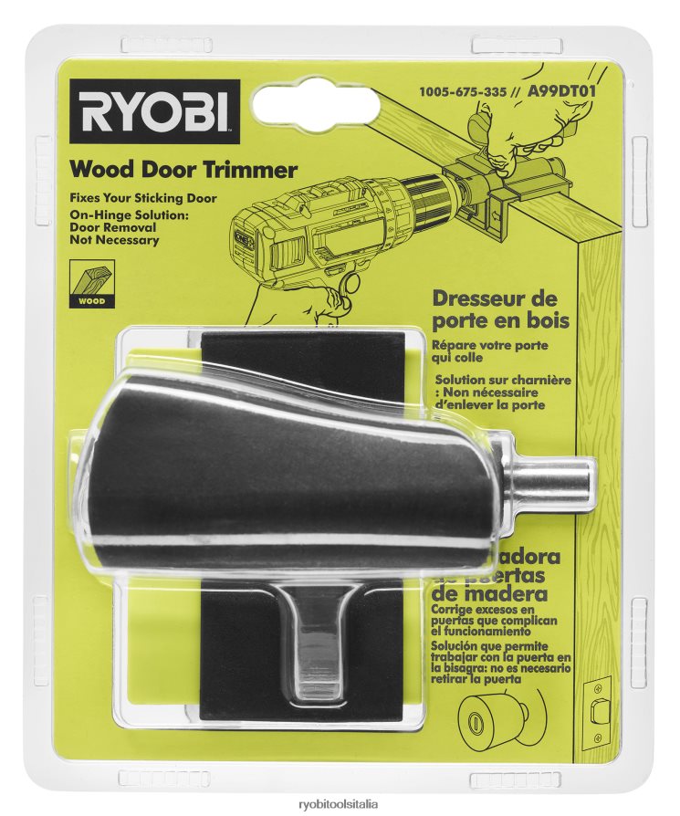 il tagliabordi per porte in legno Ryobi è la soluzione perfetta per frustrare le porte che si attaccano. questo rifinitore unico richiede solo un trapano standard, senza materiali aggiuntivi, per radere via il materiale in eccesso lungo la porta. rimuovendo fino a 1/32″ per passaggio su porte di dimensioni 1-3/4″ e 1-3/8″, questo rifinitore è la soluzione migliore per la maggior parte delle porte in legno incollate. Questa soluzione semplice e veloce evita la necessità di estrarre ingombranti levigatrici o piallatrici. Ma soprattutto, la tua porta in legno può rimanere incernierata, dimezzando il tempo e lo sforzo del tuo progetto.
