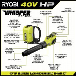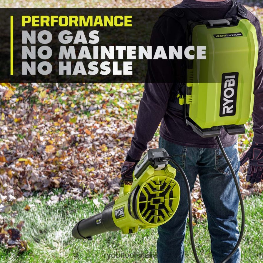 migliora il tuo sistema 40 V con il kit soffiatore a getto senza fili da 40 V HP. utilizzando la tecnologia da 40 V HP e il design della ventola a getto, questo soffiatore offre più potenza di un soffiatore a gas da 27 cc, rendendolo un vero sostituto del gas. questo soffiatore funziona fino a 30 minuti se abbinato alle (2) batterie al litio da 40 V 6 Ah incluse. La tecnologia da 40 V HP combina un motore brushless, un’elettronica avanzata e una tecnologia al litio ad alte prestazioni per fornire 730 cfm e 190 mph, rendendolo ideale per affrontare lavori difficili come foglie bagnate e detriti pesanti del prato. il soffiatore della serie Whisper è progettato per essere più silenzioso dell’86% rispetto a quello a gas e persino più silenzioso di altri soffiatori cordless, consentendoti di lavorare in qualsiasi momento senza disturbare gli altri. sperimenta le prestazioni del gas semplicemente premendo un grilletto. niente gas, nessuna manutenzione e nessun problema. il grilletto a velocità variabile e il pulsante turbo ti danno il controllo completo dell’uscita dell’aria, così puoi tornare indietro quando ti trovi in aree delicate e attivare il pulsante turbo per eliminare i detriti più difficili. con due punte di velocità personalizzabili per una maggiore velocità dell’aria e compatibilità con altri accessori, questo soffiatore offre la massima versatilità per le tue esigenze paesaggistiche. soprattutto, fa parte del sistema ryobi 40v in cui qualsiasi batteria da 40v funziona con qualsiasi prodotto da 40v. questo kit soffiatore da 40 V HP è coperto dalla garanzia del produttore di 5 anni Ryobi e dalla garanzia della batteria di 3 anni del produttore. questo kit include il ventilatore a getto ry404010 da 40 V, (2) batterie al litio op40605 da 40 V 6 Ah, caricabatterie integrato op40bpa da 40 V, tubo del soffiatore, (2) suggerimenti per la velocità e manuali dell’operatore.