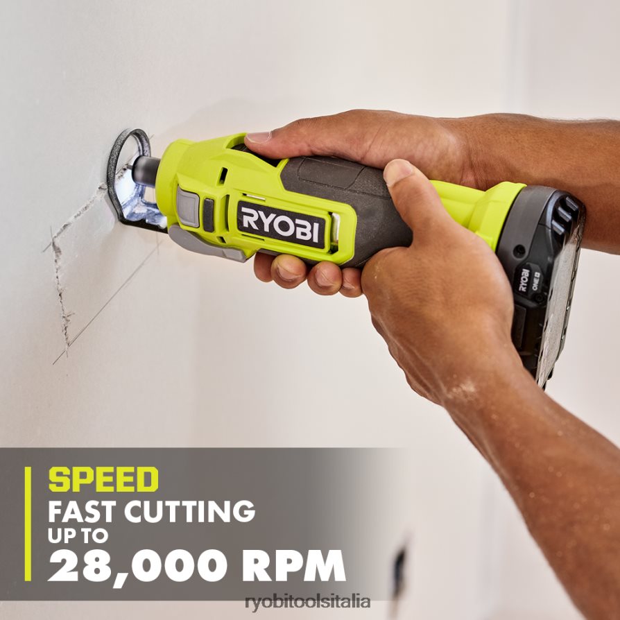 espandi il tuo sistema Ryobi 18v one+ con lo strumento di ritaglio ryobi 18v one+. il potente motore fornisce fino a 28.000 giri al minuto e fornisce oltre 190 tagli per carica. dotato di una luce da lavoro a LED integrata sperimenterai una migliore visibilità del taglio. questo strumento accetta punte da 1/8″ e 1/4″ incorporando anche un cambio punta facile e veloce con spazio per chiavi integrato. lo strumento da ritaglio 18v one+ ha un interruttore di blocco per il taglio continuo. soprattutto, fa parte del sistema ryobi one+ di oltre 280 prodotti cordless che funzionano tutti sulla stessa piattaforma di batteria. questo strumento di ritaglio 18 V one+ è coperto dalla garanzia del produttore di 3 anni Ryobi e include (1) strumento di ritaglio 18 V one+ e manuale dell’operatore. batteria e caricabatterie venduti separatamente.