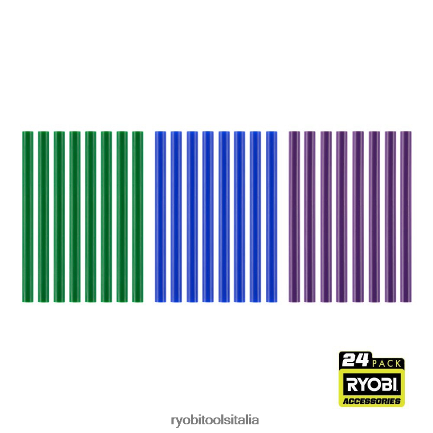 il set di mini stick di colla dai colori freddi ryobi in confezione da 24 è perfetto per l’uso su legno, plastica, ceramica, tessuti, cartone e tessuti vari . la capacità di doppia fusione ti prepara per varie applicazioni. per ottenere i migliori risultati, abbina sempre i tuoi strumenti Ryobi agli accessori Ryobi. il ryobi a1932409 include 8 mini stick di colla verdi, 8 blu e 8 viola.