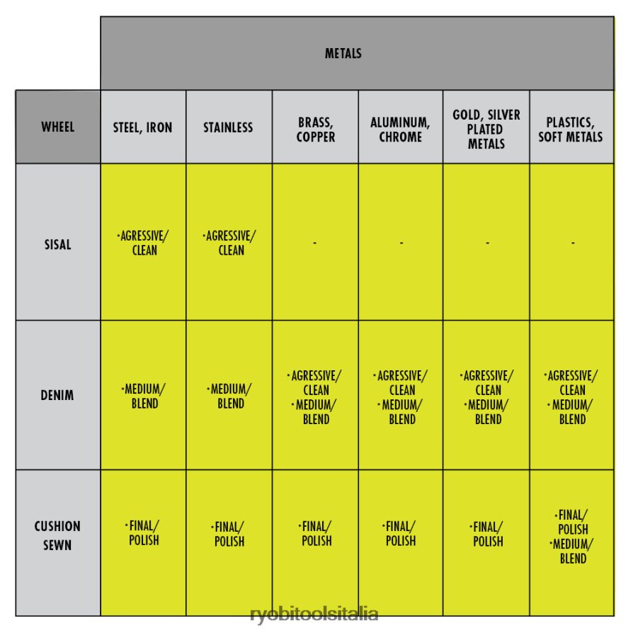 completa la tua collezione di strumenti con i 4 pz. Set di ruote per lucidatura e lucidatura da 4″. Queste ruote per lucidatura possono essere utilizzate per più fasi del processo di lucidatura e possono essere utilizzate su una varietà di metalli. Queste ruote sono compatibili con smerigliatrici da banco, trapani e avvitatori a percussione con il mandrino incluso. Per ottenere il meglio risultati da utilizzare con il set di composti per la pulizia dei metalli ryobi. Questo set include (1) ruota in sisal, (1) ruota a spirale in denim e (1) ruota cucita con cuscino e (1) mandrino con gambo esagonale da 1/4″.