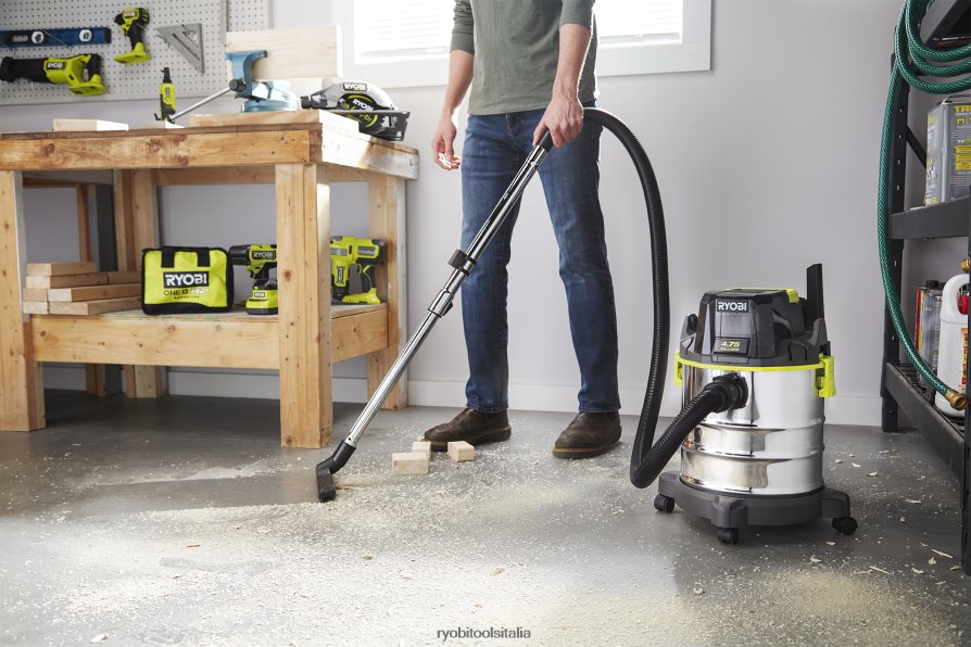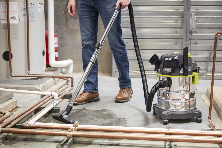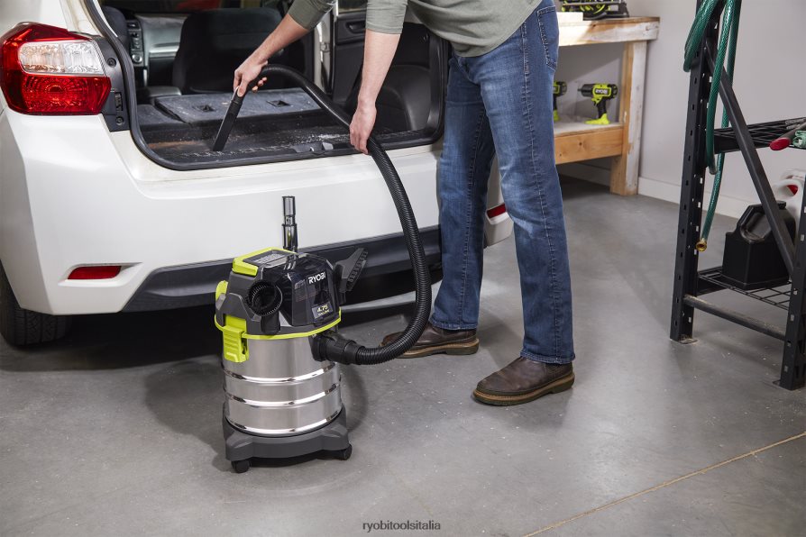 espandi il tuo sistema ryobi 18v one+ con l’aspirapolvere/aspiraliquidi senza fili pwv201b da 4,75 galloni (solo utensile). questo aspirapolvere alimentato da 18 V offre la comodità di uno strumento senza fili e fornisce una potente potenza di 40 cfm. questo aspirapolvere è dotato di una vasca in acciaio inossidabile per una maggiore durata. le quattro ruote piroettanti ruotano di 360 gradi offrendo la massima mobilità bilanciata superando ostacoli come le corde. lo spazio per gli accessori integrato a bordo contiene comodamente la bacchetta di estensione telescopica, la bocchetta per fessure, la bocchetta per pavimenti e la spazzola per la polvere. il tubo flessibile da 5 piedi x 1-3/8 pollici si attorciglia saldamente in posizione per evitare disconnessioni accidentali. l’aspiratore umido/asciutto Ryobi da 4,75 galloni è dotato di una maniglia pieghevole che facilita il trasporto al tuo disordine e si appiattisce quando viene riposto dopo il lavoro. thLe chiusure sovradimensionate consentono di rimuovere facilmente la parte superiore e di svuotare il serbatoio. questo vuoto include un filtro in schiuma per applicazioni a umido e un filtro a cartuccia per applicazioni a secco. coperto dalla garanzia del produttore ryobi di 3 anni, l’aspiratore umido/asciutto da 18 V one+ da 4,75 galloni include un tubo flessibile da 5 piedi x 1-3/8 pollici, bacchetta di estensione telescopica, bocchetta per fessure, bocchetta per pavimenti, spazzola per la polvere, filtro in schiuma , filtro a cartuccia e manuali dell’operatore. batteria e caricabatterie venduti separatamente.