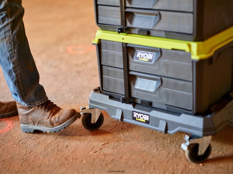il sistema di storage modulare ryobi link sta rivoluzionando il settore dello storage, consentendoti di organizzare, accedere e trasportare la tua vita. la base mobile ryobi link è progettata con materiale resistente agli urti per gestire una capacità di carico di 200 libbre per portare il tuo stack in movimento. le rotelle piroettanti e le ruote in gomma a scorrimento fluido consentono un movimento fluido nello spazio di lavoro. le ruote anteriori bloccabili e i punti di ancoraggio integrati mantengono la base sicura in qualsiasi posizione. la maniglia consente di sollevare facilmente e appendere la base in modo efficiente. soprattutto, fa parte della linea di prodotti del sistema di archiviazione modulare ryobi link che utilizza la stessa tecnologia di chiusura per connettere perfettamente le tue esigenze di archiviazione mobile e fissa. possiedi il tuo spazio con il sistema di archiviazione modulare ryobi link.