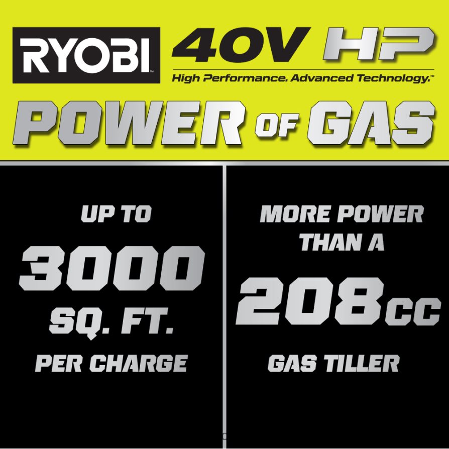 - La tecnologia da 40 V HP offre più potenza di una motozappa a gas da 208 cc