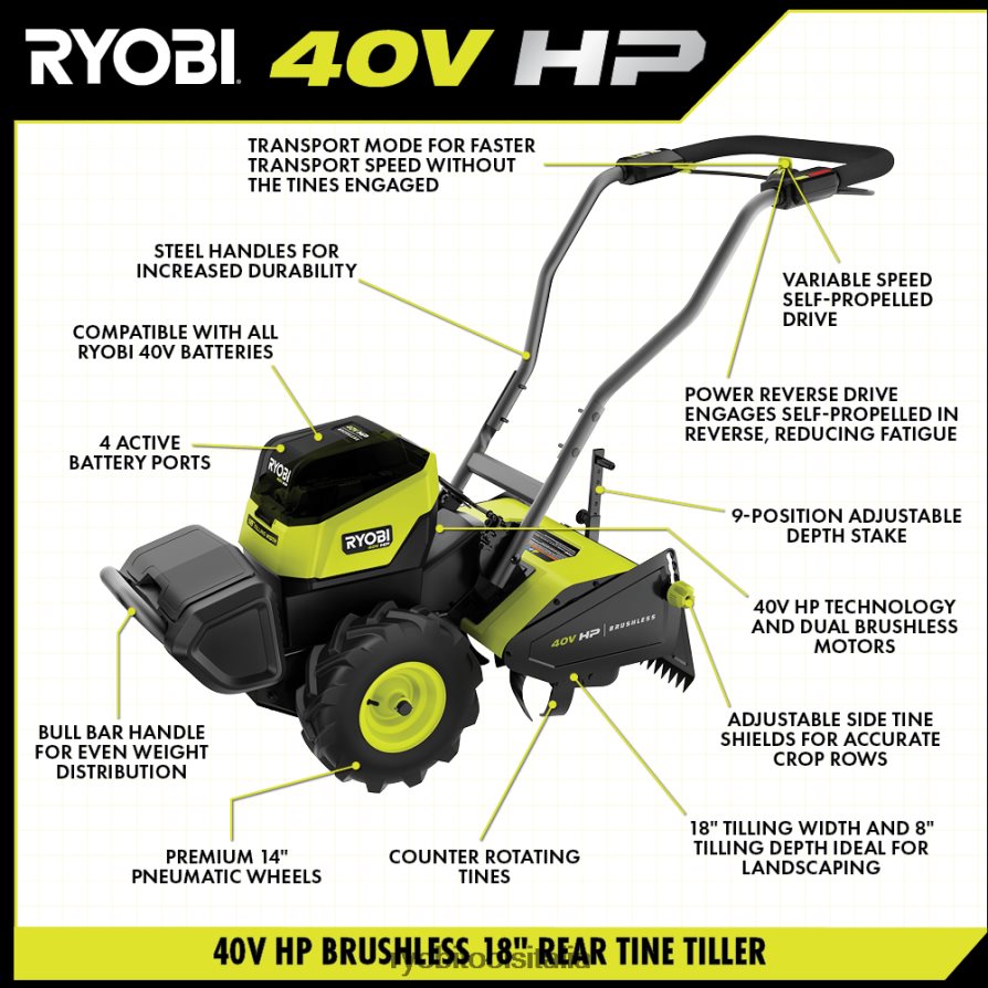 entra nel sistema ryobi 40v con il kit fresa posteriore ryobi 40v hp brushless da 18″. La tecnologia 40v hp offre più potenza di una motozappa a gas da 208 cc, che rende questa motozappa un vero sostituto del gas. La tecnologia da 40 V HP combina due motori brushless e denti controrotanti per fornire la potenza necessaria per esplorare nuovi terreni e affrontare terreni difficili con una larghezza di lavorazione di 18” e una profondità di lavorazione di 10”. Con una superficie fino a 3.000 piedi quadrati per carica, le dimensioni di un campo da tennis, questa motozappa è perfetta per qualsiasi cosa, dai grandi giardini alle piccole aziende agricole, ed è dotata di semovente a velocità variabile che garantisce un funzionamento più fluido e un controllo senza sforzo, anche in retromarcia. in modalità trasporto, attivare la funzione di auto-spinta senza innestare i denti scegliere la profondità di lavorazione utilizzando il 9-posizionare il picchetto di profondità regolabile e, per proteggere le piante circostanti e garantire file di raccolto precise, utilizzare lo scudo laterale regolabile. la zavorra di sabbia rimovibile e la barra del toro consentono di aggiungere peso e distribuirlo uniformemente. ricarica (2) batterie da 40 V 6 Ah contemporaneamente in meno di 60 minuti con il caricabatterie rapido a doppia porta da 40 V incluso. soprattutto, fa parte del sistema ryobi 40v in cui qualsiasi batteria da 40v funziona con qualsiasi prodotto da 40v. questo kit fresa posteriore ryobi 40v hp brushless da 18″ è coperto dalla garanzia ryobi di 5 anni sullo strumento del produttore, 3 anni di garanzia sulla batteria del produttore e fresa ry40702 40v hp brushless posteriore da 18″, (4) batterie al litio op40605 40v 6ah, caricabatterie rapido a doppia porta op409 da 40 V e manuali dell’operatore.