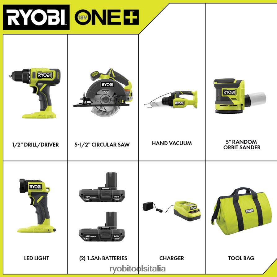entra nel sistema ryobi 18v one+ con il kit combinato di 5 utensili ryobi 18v one+: trapano/avvitatore da 1/2″, sega circolare da 5-1/2″, aspirapolvere manuale, casuale levigatrice orbitale, luce led, (2) batterie al litio da 1,5 Ah, caricabatterie e borsa attrezzi. il trapano/avvitatore fornisce fino a 515 pollici-libbre. di coppia e dispone di un mandrino in metallo a cricchetto da 1/2″ per soddisfare le vostre esigenze di foratura e guida. La sega circolare da 5-1/2″ ha la capacità di tagliare 2 materiali, con oltre 215 tagli per carica. La potente aspirazione dell’aspirapolvere manuale pulisce una varietà di detriti e superfici secche ed è compatibile con accessori da 1-1/4″. La levigatrice orbitale casuale crea una finitura liscia e senza vortici con 10.000 opm. Questo strumento dispone anche di un fissaggio a strappo per una rapida attacco per carta vetrata e raccolta polvere integrata per una facile pulizia. La luce a LED ha anche 280 lumen di emissione luminosa e haÈ una testa girevole a 130 gradi per la direzione del fascio di luce regolabile. le batterie al litio da 18 V one+ 1,5 Ah sono dotate di un indicatore di livello carburante integrato ad alta visibilità per monitorare l’autonomia rimanente. il caricabatterie da 18 V è compatibile con le batterie al litio Ryobi One+. questo kit combinato 18v one+ 5 utensili è coperto dalla garanzia del produttore ryobi di 3 anni e include (1) trapano/avvitatore pcl206 18v one+ 1/2″, (1) sega circolare pcl500 18v one+ 5-1/2″, ( 1) aspirapolvere manuale pcl705 18v one+, (1) levigatrice orbitale casuale pcl406 18v one+, (1) luce a led pcl660 18v one+, (2) batterie al litio 18v one+ 1,5ah, (1) caricatore pcg002 18v one+, filtro dell’aspirapolvere, circolare lama per sega, assortimento di carta vetrata, borsa degli attrezzi e manuali dell’operatore.