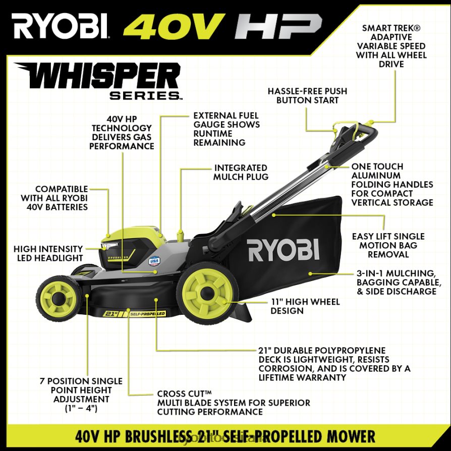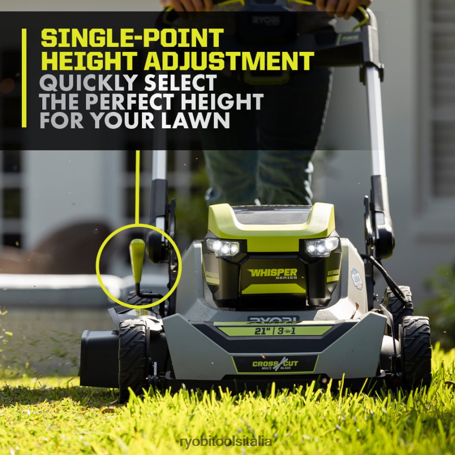 vi presentiamo il tosaerba ryobi 40v hp brushless 21” awd. La tecnologia da 40 V HP offre più potenza di un tosaerba a gas da 170 cc, rendendo questo tosaerba un vero sostituto del gas. è ideale per un massimo di acri con doppie porte batteria attive e funziona fino a 70 minuti con le (2) batterie da 40 V 6 Ah incluse. questo tosaerba è dotato del sistema multilama a taglio incrociato che offre un taglio superiore con ritagli più fini che eliminano gli aggregati, consente una dispersione ulteriore e più uniforme durante lo scarico laterale e insacca in modo più efficiente rispetto alla concorrenza in modo da non dover smettere di falciare per svuotare la borsa con la massima frequenza. il motore brushless e l’elettronica avanzata reagiscono automaticamente alle condizioni di falciatura aumentando la velocità della lama per eliminare l’impantanamento e alimentando i tagli più difficili. come parte della serie Whisper,questo tosaerba è più silenzioso dell’85% rispetto a quello a gas e persino più silenzioso di altri tosaerba a batteria, consentendoti di tagliare l’erba in qualsiasi momento della giornata senza disturbare gli altri. il sistema di trazione integrale ti offre la massima manovrabilità e controllo su qualsiasi terreno fornendo piena potenza a tutte e quattro le ruote, mentre la tecnologia semovente smart trek ti consente di adattare facilmente la velocità del tosaerba al tuo ritmo con meno fatica. seleziona rapidamente l’altezza perfetta per il tuo prato da 1 pollice a 4 pollici con la regolazione dell’altezza a punto singolo in 7 posizioni. una volta terminato il lavoro, la facile rimozione del sacco di raccolta consente di svuotare rapidamente il sacco dell’erba senza versare l’erba tagliata, mentre le maniglie pieghevoli con un solo tocco si ripiegano rapidamente e facilmente per uno stoccaggio compatto e verticale anche in spazi ristretti. fare riferimento all’indicatore del carburante di bordo per l’autonomia rimanente e, con il caricabatterie rapido da 40 V incluso, le batterie si ricaricano in meno di 60 minuti. passa rapidamente dal sacco al mulching semplicemente tirando una leva con il mulc integratospina H. il design della ruota alta da 11” consente di sterzare più facilmente e fornisce una migliore trazione e manovrabilità complessiva. il ponte composito durevole da 21” è leggero, resistente alla corrosione ed è coperto da una garanzia a vita limitata. questo tosaerba è dotato di fari a LED ad alta intensità che ti consentono di falciare all’alba o al tramonto. soprattutto, fa parte del sistema 40 V: qualsiasi batteria da 40 V funziona con qualsiasi prodotto da 40 V. Questo tosaerba a trazione integrale senza spazzole da 40 V HP da 21 pollici è coperto dalla garanzia dello strumento di 5 anni del produttore e dalla garanzia della batteria di 3 anni del produttore. include tosaerba ry401201 40 V hp brushless 21” awd, (2) batterie al litio op40605 40 V 6 Ah, caricabatterie rapido op406 40 V, sacco raccoglierba, chiave di avviamento, scivolo di scarico laterale e manuali dell’operatore.