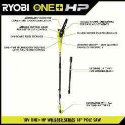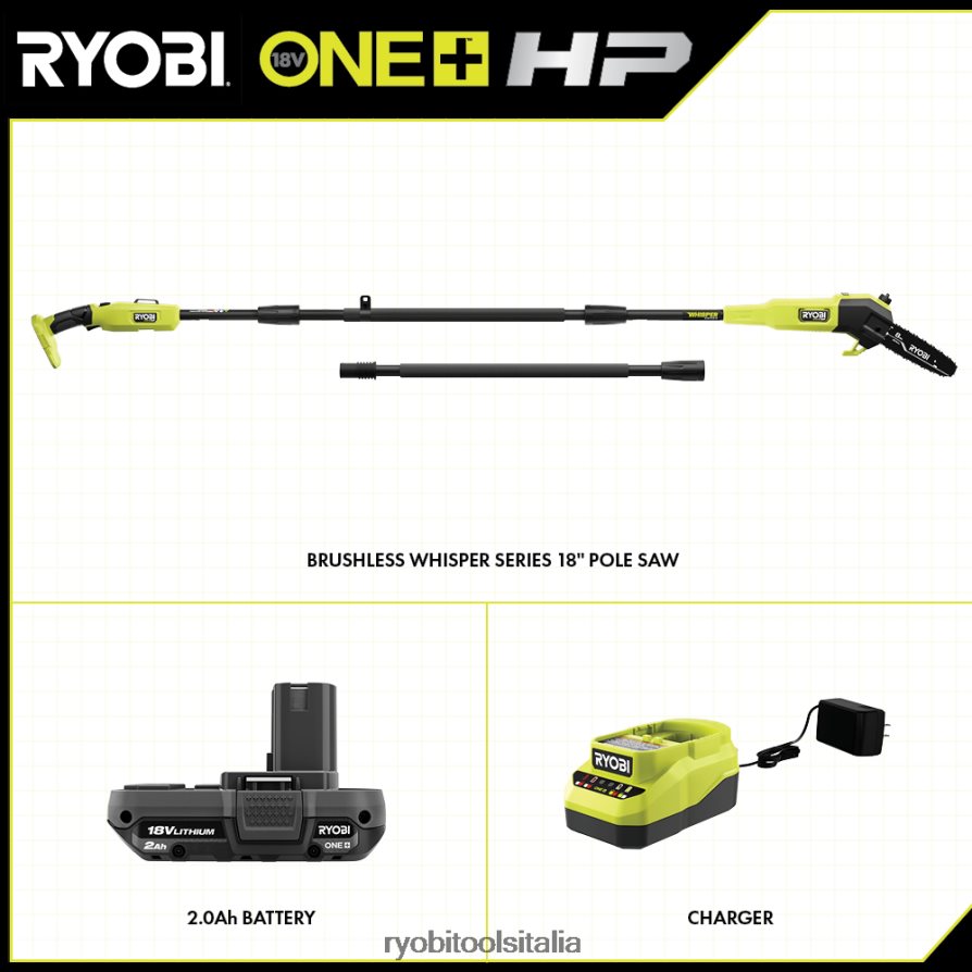 la sega ad asta a batteria ryobi 18v one+ hp brushless da 8″ manterrà i tuoi alberi e il tuo giardino al meglio del vicinato. La tecnologia one+ hp offre un taglio fino al 30% più veloce. non solo sarai in grado di portare a termine il lavoro rapidamente, ma sarai in grado di completarlo silenziosamente poiché questa sega ad asta fa parte della linea di prodotti della serie Whisper di Ryobi, la nostra gamma di prodotti più silenziosi. con estensione fino a 9,5′, angolato testa di taglio e motore in linea, questa sega ad asta è ideale per la potatura e la sramatura per una facile rimozione dei rami. Ha anche un oliatore automatico, tendicatena attrezzato e un deposito per gli attrezzi integrato per la tua comodità. Questo kit include un ryobi 2ah batteria e caricabatterie agli ioni di litio. la sega ad asta a batteria ryobi 18v hp brushless da 8″, la batteria 18v one+ 2ah e il caricabatterie 18v one+ sono compatibili con tutti gli ryobiprodotti obi 18v one+. questo strumento e la batteria sono coperti da una garanzia di 3 anni.