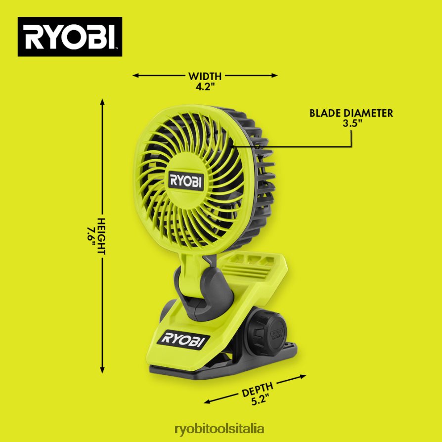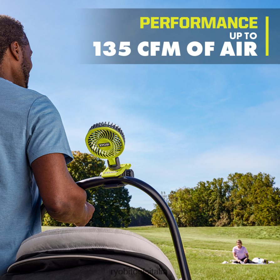 ryobi presenta il kit ventola con morsetto al litio USB. questa ventola con morsetto al litio USB è la nostra ventola più compatta e portatile fino ad oggi. mantieni la calma con oltre 7 ore di autonomia e 2 impostazioni di velocità. questa ventola è ugualmente compatta e potente con un massimo di 135 piedi cubi al minuto (cfm). la testa girevole multidirezionale e la base di bloccaggio integrata con capacità di bloccaggio di 1-1/4″ rendono questa soluzione di raffreddamento versatile e definitiva. Le dimensioni compatte e gli anelli per cordino integrati migliorano la portabilità di questa ventola in modo da poterla portare con sé ovunque. caratteristiche di questo prodotto un indicatore LED per segnalare quando la batteria è carica (verde) o è scarica (rosso) durante l’uso. la ventola con morsetto al litio USB fa parte del sistema USB al litio che fornisce soluzioni compatte, portatili e ricaricabili per dispositivi senza filipotenza e produttività. Questo kit ventola con morsetto al litio USB è coperto dalla garanzia del produttore ryobi di 2 anni e include (1) ventola con morsetto al litio USB fvf51, (1) batteria al litio USB fvb01 da 2 Ah, cavo USB e manuale dell’operatore.