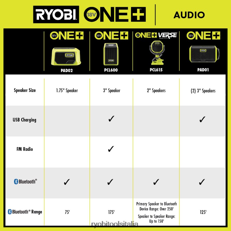 RYOBI Radio/altoparlante bluetooth compatto 18v one+ illuminazione, stile di vita e attività ricreative 06V0D465