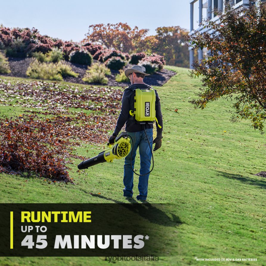 migliora il tuo sistema 40 V con il kit soffiatore a getto senza fili da 40 V HP. utilizzando la tecnologia da 40 V HP e il design della ventola a getto, questo soffiatore offre più potenza di un soffiatore a gas da 27 cc, rendendolo un vero sostituto del gas. questo soffiatore funziona fino a 30 minuti se abbinato alle (2) batterie al litio da 40 V 6 Ah incluse. La tecnologia da 40 V HP combina un motore brushless, un’elettronica avanzata e una tecnologia al litio ad alte prestazioni per fornire 730 cfm e 190 mph, rendendolo ideale per affrontare lavori difficili come foglie bagnate e detriti pesanti del prato. il soffiatore della serie Whisper è progettato per essere più silenzioso dell’86% rispetto a quello a gas e persino più silenzioso di altri soffiatori cordless, consentendoti di lavorare in qualsiasi momento senza disturbare gli altri. sperimenta le prestazioni del gas semplicemente premendo un grilletto. niente gas, nessuna manutenzione e nessun problema. il grilletto a velocità variabile e il pulsante turbo ti danno il controllo completo dell’uscita dell’aria, così puoi tornare indietro quando ti trovi in aree delicate e attivare il pulsante turbo per eliminare i detriti più difficili. con due punte di velocità personalizzabili per una maggiore velocità dell’aria e compatibilità con altri accessori, questo soffiatore offre la massima versatilità per le tue esigenze paesaggistiche. soprattutto, fa parte del sistema ryobi 40v in cui qualsiasi batteria da 40v funziona con qualsiasi prodotto da 40v. questo kit soffiatore da 40 V HP è coperto dalla garanzia del produttore di 5 anni Ryobi e dalla garanzia della batteria di 3 anni del produttore. questo kit include il ventilatore a getto ry404010 da 40 V, (2) batterie al litio op40605 da 40 V 6 Ah, caricabatterie integrato op40bpa da 40 V, tubo del soffiatore, (2) suggerimenti per la velocità e manuali dell’operatore.