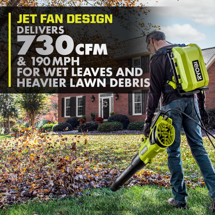 - 730 cfm e 190 mph ideale per foglie bagnate e detriti del prato più pesanti